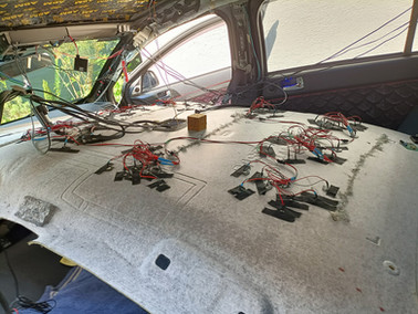 Weiße LEDs ergänzen das Ganze und verleihen dem Sternenhimmel mehr Fülle. Er schaltet sich automatisch mit der Innenraumbeleuchtung ein, kann aber auch per Fernbedienung oder übers Internet gesteuert werden – vorausgesetzt, er ist über das Fondlicht aktiviert. Dabei habe ich es so getrickst, dass nur der Sternenhimmel angeht und nicht das Fondlicht.